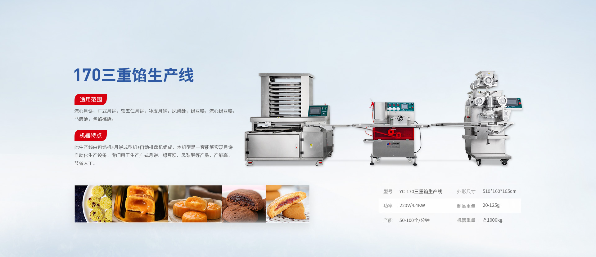 主營產(chǎn)品有:包餡機、全自動曲奇生產(chǎn)線、超聲波曲奇生產(chǎn)線、全自動酥餅開酥成型生產(chǎn)線、面包生產(chǎn)線、包子生產(chǎn)線、流心月餅生產(chǎn)線、蛋黃月餅生產(chǎn)線、麻薯青團生產(chǎn)線、水果大福生產(chǎn)線、水餃生產(chǎn)線、魚丸生產(chǎn)線、水晶包生產(chǎn)線等各類食品機械。